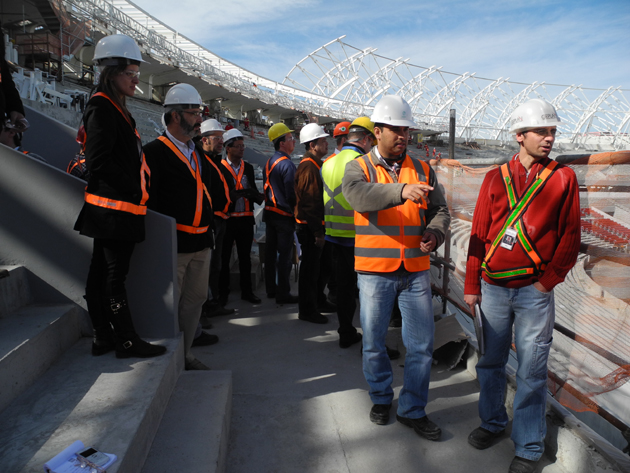 Estiveram presentes membros da FIFA, do COL, da Prefeitura de Porto Alegre, representantes de empresas de telecomunicação, bem como dirigentes do Internacional. Após uma manhã de reuniões e apresentações sobre o andamento da estrutura para as transmissões da Copa do Mundo de 2014, a comitiva realizou um tour pelas obras do Gigante, para que pudessem ver de perto o avanço das instalações exigidas.