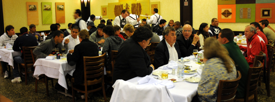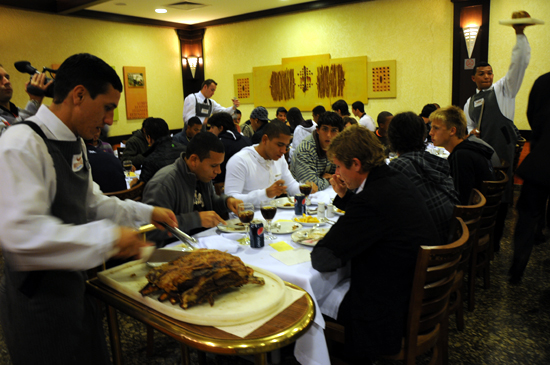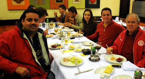 A confraternização uniu jogadores, comissão técnica e dirigentes do Internacional. "Para nós é muito importante uma conquista como esta, numa competição longa fizemos uma grande campanha em que vários jogadores foram bem e mostraram seu valor", disse o volante e capitão Juliano. "É justo este presente, já somos campeões e agora podemos comer picanha e filé à vontade", brincou. Mesmo em recuperação de lesão no joelho, o atacante Walter apareceu para prestigiar os novos campeões. Walter já faz parte do grupo profissional do técnico Tite, no entanto no ano passado antes de chegar ao time principal do Inter também venceu o Campeonato Gaúcho de Juniores.