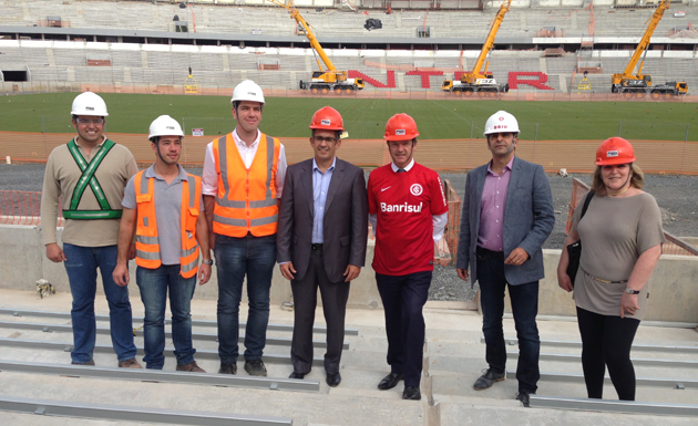 O Ministro de Relações Exteriores da Inglaterra Hugo Swire visitou o Beira-Rio, na tarde deste domingo (29/9). Após ver a maquete no Centro de Visitantes, recebeu uma camisa oficial do Inter. Swire fez o tour pelas arquibancadas, gramado e vestiário fardado com o manto sagrado. Uma parada especial foi feita nas novas cadeiras, que contam com tecnologia britânica. Após conhecer o Gigante, o ministro saiu muito satisfeito com a sede gaúcha da Copa do Mundo de 2014.