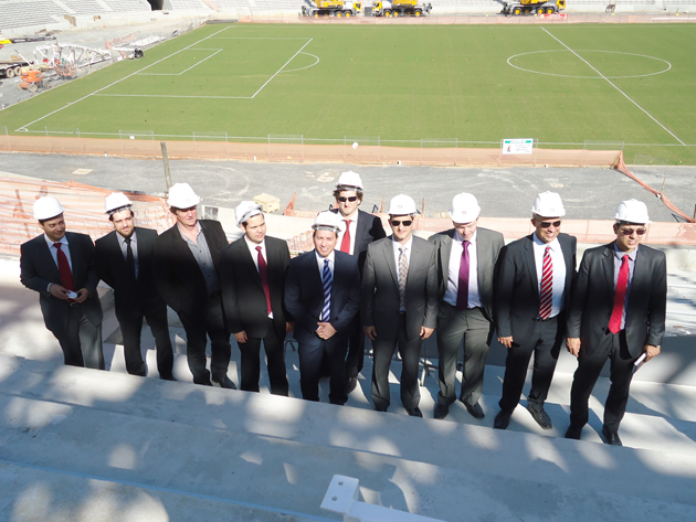 Com o objetivo de conhecer as instalações e acessos internos e externos que serão utilizados durante a Copa do Mundo, uma comitiva da Polícia Federal visitou o Estádio Beira-Rio na tarde desta quarta-feira (09/10). Juntamente com o Diretor Executivo da PF, Delegado Rogério Galloro, a comitiva, formada por responsáveis pelo planejamento das ações da instituição para o evento no Rio Grande do Sul, aprovou o trabalho feito no Gigante.