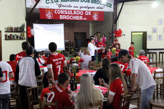 A pequena cidade de Brochier-RS, distante cerca de 80 quilômetros de Porto Alegre, festejou o amor ao Internacional em seu primeiro evento consular realizado na noite da última quinta -feira (10/10). Uma belíssima festa para cerca de 300 colorados agitou a cidade, e a chegada do ônibus oficial do Internacional, trazendo a comitiva da vice-presidência de comunicação social, foi saudado por uma carreata e queima de fogos de artifício pelas ruas da cidade.