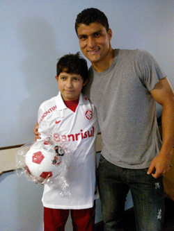 O lateral Ednei visitou na última segunda-feira (14/10) o colorado Josué no Instituto de Cardiologia. O garoto, 10 anos, irá passar por uma delicada cirurgia cardíaca, e um amigo do atleta do Inter, que conhece o irmão de Josué, solicitou a visita. Ednei o presenteou com uma camisa do Inter e distribuiu autógrafos e bolas entre as crianças, familiares e funcionários do hospital.