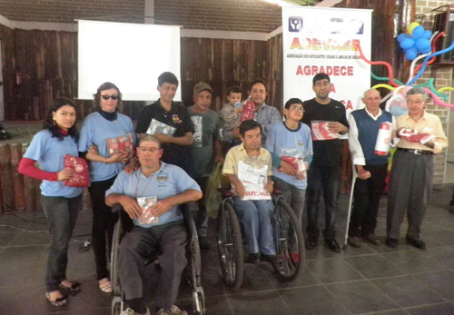 Durante sua festa de três anos, a Associação dos Deficientes Visuais e Amigos de São Borja (ADEVASB) distribuiu aos pacientes brindes do Inter que haviam sido doados pelo consulado colorado na cidade.