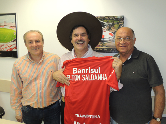 O cantor nativista e cônsul cultural do Internacional Elton Saldanha visitou o Beira-Rio na última terça-feira (29/10). Recebido pelo vice-presidente de marketing Adauri Silveira e pelo diretor do projeto cônsul cultural Carlos Cardoso, Saldanha foi presenteado com uma camisa personalizada.