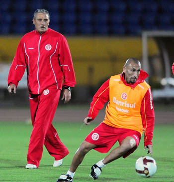 Tite observa o trabalho do capitão Guiñazu no Equador