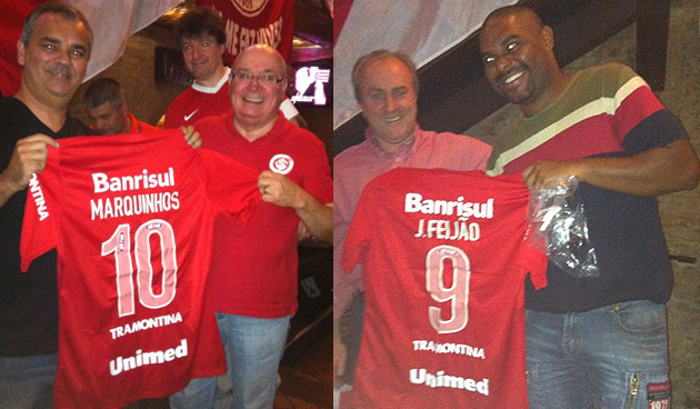 Marquinhos (E) e Jéfferson Feijão (D) foram presenteados com camisas do Inter