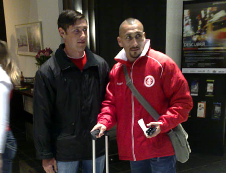 Capitão Guiñazu na chegada ao hotel onde o Inter está concentrado