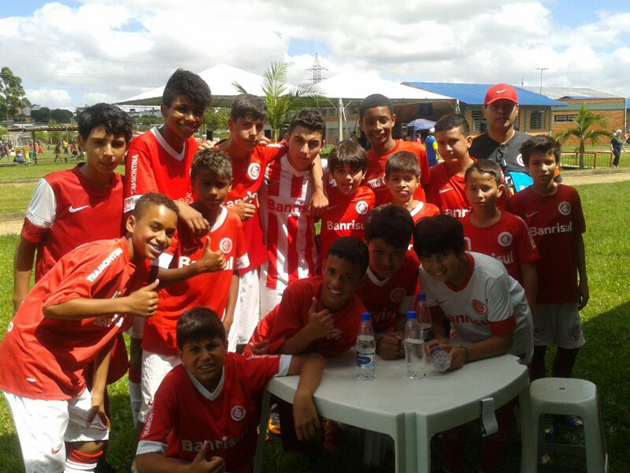 Jovens da escolhinha colorada confraternizam nos Jogos Maristas