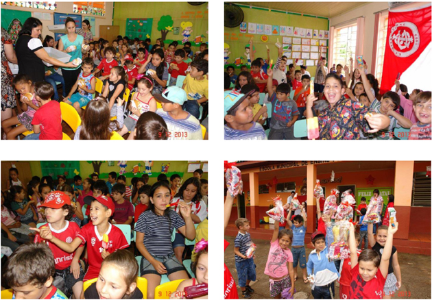 O consulado do Internacional e a Associação dos Colorados de Santo Ângelo/RS - ASCOSA realizaram no último dia 9 de dezembro uma ação solidária alusiva ao Natal 2013. Na oportunidade, foram proporcionados momentos de alegria, entretenimento e alimentação para as crianças educadas e assistidas pela Escola Municipal de Ensino Fundamental Heinz Augusto Rogowski.