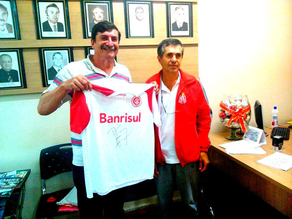 Elido Joáo Balestrin (E) ganhou camisa do Inter do diretor do Genoma Colorado