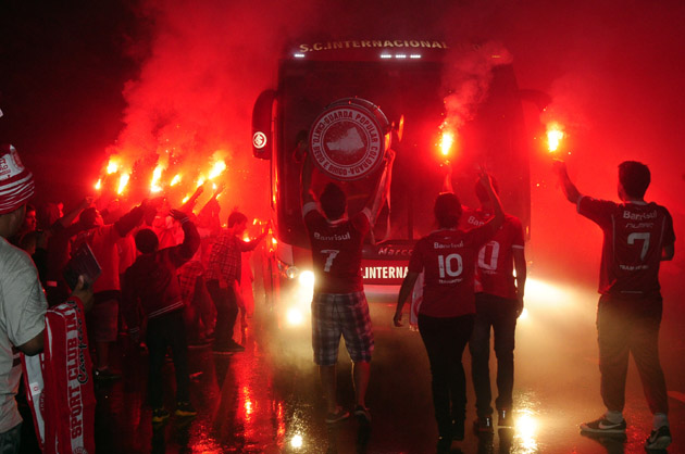 A recepção feita pela torcida foi calorosa. O ônibus que trouxe a delegação desde Porto Alegre foi saudado por centenas de colorados na rua que dava acesso ao Hotel Serrano, onde o Campeão de Tudo está concentrado. Com sinalizadores, fogos de artifício e bandeiras em punho, os fãs recriaram a atmosfera da ação 'Ruas de Fogo', ação que marcou história no Beira-Rio.