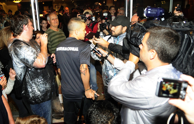 Torcedores recriaram a ação 'Ruas de Fogo' na chegada do Inter