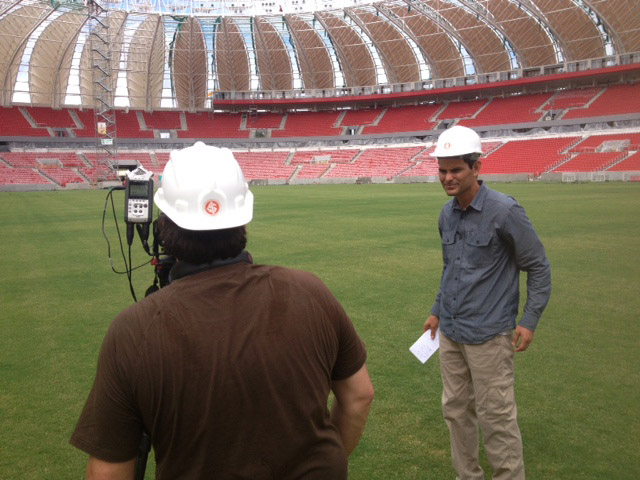 Repórter Gabriel Elizondo, norte-americano e correspondente da Al Jazeera no Brasil, destacou a reutilização da água da chuva no Beira-Rio