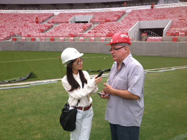 Repórter chinesa Yun Zeng ficou impressionada com a transformação do Gigante da Beira-Rio desde a última visita (Fotos: Alexandre Corrêa)