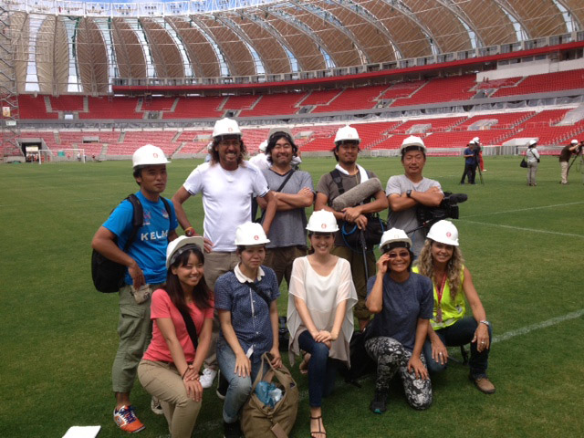 Ex-jogador Rui Ramos com equipe japonesa do canal NHK e a gerente de tecnologia, Carla Ritter
