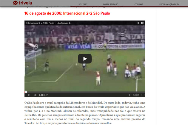 A partida eleita é a do dia 16 de agosto de 2006, Internacional 2×2 São Paulo. Clique aqui e veja a reportagem.