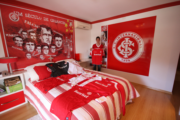 "Era um sonho que eu tinha que foi realizado. Me sinto muito bem aqui. A decoração muito sucesso entre os meus amigos colorados e até torcedores de outros times", conta Luis Felipe, que teve o quarto reformado meses antes da conquista do bicampeonato da Libertadores, em 2010.