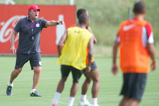 Abel Braga orienta o time durante treino tático no CT do Parque Gigante