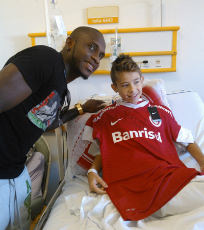 A pedido dos familiares de Jociel Augusto Bruch, um colorado de 14 anos, o volante Willians visitou o Hospital da Criança Santo Antônio. O jovem é paciente no local, para onde foi depois de ter realizado um transplante de rim.