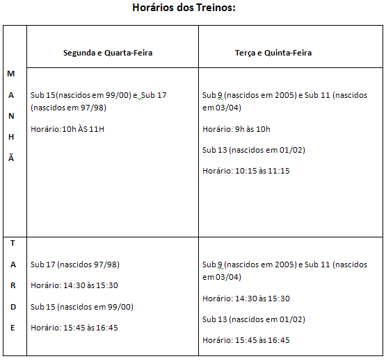* Início das Aulas: 10/03/2014. Local:Gigantinho.