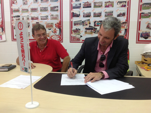 Às vésperas da comemoração do 12º aniversário do Genoma Colorado, o diretor geral do projeto Paulo Rubens Seelig selou uma parceria com o prefeito de Pantano Grande-RS Cássio Nunes Soares. O documento, que oficializa a realização do evento de comemoração do aniversário do projeto na cidade e o lançamento oficial da Taça Genoma, foi assinado na sede do Genoma, no Gigantinho, na tarde desta segunda-feira (24/3).