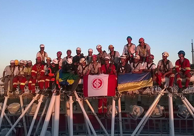 Alipinistas comemoraram no alto do Gigante o fim dos trabalhos (foto: reprodução)