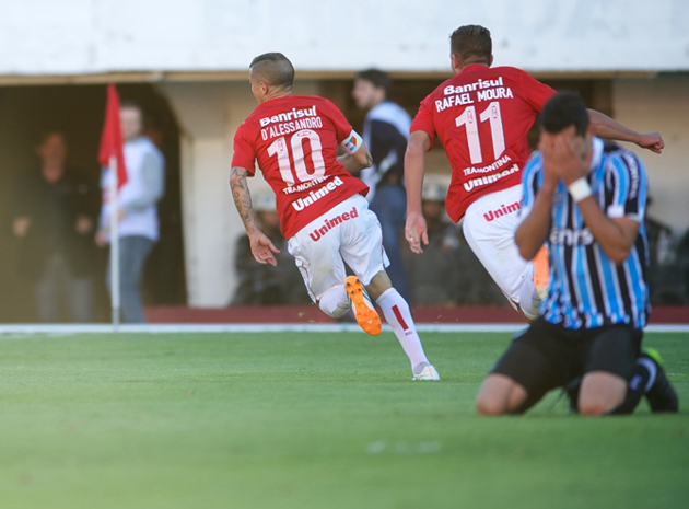 Aos 26min, Rafael Moura apertou Werley no interior da área e o zagueiro acabou se atrapalhando com a bola. Foi então que D'Alessandro surgiu para chutar no cantinho esquerdo para abrir o placar no Centenário! Foi o oitavo gol do meia em clássicos!