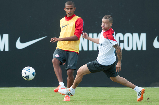 Ernando (E) e D'Alessandro em ação no CT do Parque Gigante
