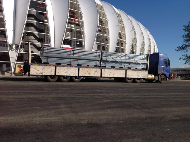 Primeiro caminhão com equipamentos de TV da FIFA para a Copa chega ao Beira-Rio