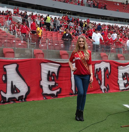 A Miss Rio Grande do Sul 2014, Marina Helms, que é torcedora colorada, se fez presente no Beira-Rio para a partida deste domingo (04/05) com o Sport. Marina deu um volta ao redor do campo de jogo e acenou para a torcida. O Sport Club Internacional, por meio de seu departamento de marketing, presentou a Miss com uma camisa do Clube do Povo. A colorada ganhou o título de Miss RS em dezembro do ano passado, quando representou a cidade de São Lourenço do Sul.