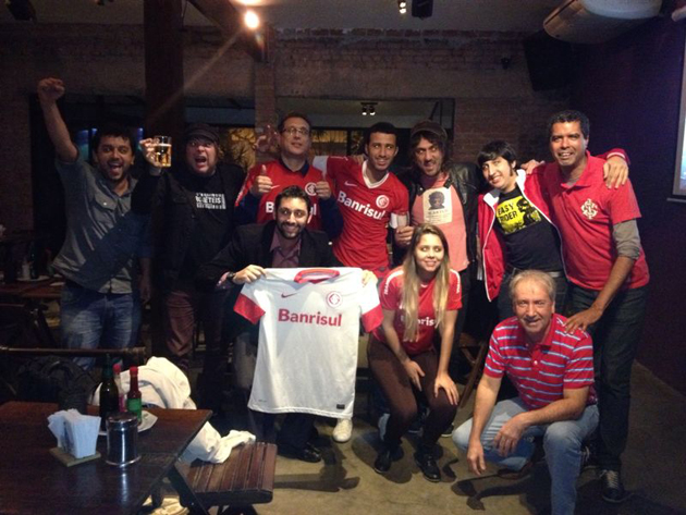 O Consulado de São Paulo recebeu uma visita especial nesta quarta-feira (14/05). Beto Bruno e Marcelo Gross, integrantes da Banda Cachorro Grande, formada por colorados, foram até o tradicional reduto de torcedores do Inter curtir a classificação colorada para a próxima fase da Copa do Brasil. Eles torceram e vibraram com os quatro gols do Campeão de Tudo juntamente com os colorados radicados na capital paulista.