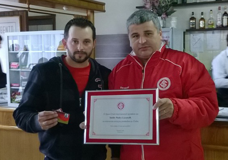 Vice de comunicação social Norberto Guimarães (D) entregou placa em homenagem a Valdir Pedro Locatteli pelos serviços prestados ao Inter