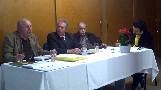 Lúcio Ignácio Regner (E), Pedro Lamana Paiva (C) e Luis Carlos Avila de Carvalho Leite (D) na reunião que aprovou conta do exercício de 2013 da FECI
