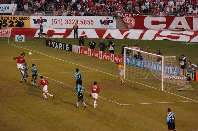 Fernandão está marcando o gol de núemro 1000 dos Gre-Nais