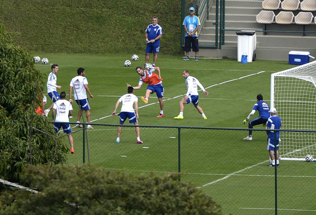O treino de hoje foi fechado à imprensa, que precisou recorrer a casas vizinhas para ver o que acontecia na Cidade do Galo. O técnico Alejandro Sabella comandou um trabalho tático, 11 contra 11, em campo reduzido, mas não deu pistas da escalação para a estreia.
