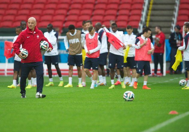Com tradução simultânea em quatro línguas, a entrevista contou com cerca de 200 jornalistas do mundo inteiro. O técnico Deschamps, capitão da equipe que conquistou a Copa de 1998, elogiou o clima gaúcho, semelhante ao europeu. "Estamos com uma temperatura agradável em Porto Alegre, mais próximo do que estamos acostumados no nosso centro de treinamento", disse o treinador.