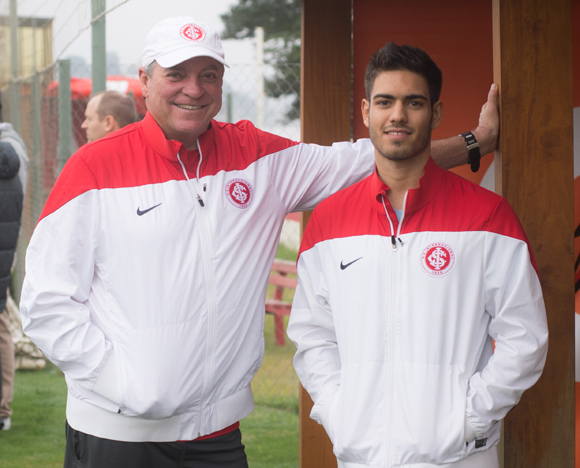 O técnico Abel Braga recebeu uma visita direto de Portugal no treino da manhã desta segunda-feira. O jovem Diogo Baía, 21 anos, veio acompanhar a atividade no CT Parque Gigante. Ele é filho de Vitor Baía, ex-goleiro de Porto e Barcelona, com 80 convocações para a seleção portuguesa.