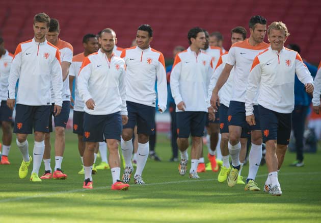 Por volta das 14h30min, o Gigante recebeu a lendária Laranja Mecânica, vice-campeã mundial em 1974, 1978 e 2010. Durante uma hora, trabalharam no gramado com treinos em campo reduzido, provavelmente já prevendo o pouco espaço que os australianos devem conceder. Curiosamente, apesar da diferença abismal de tradição entre as duas equipes, os holandeses nunca superaram os rivais desta quarta.