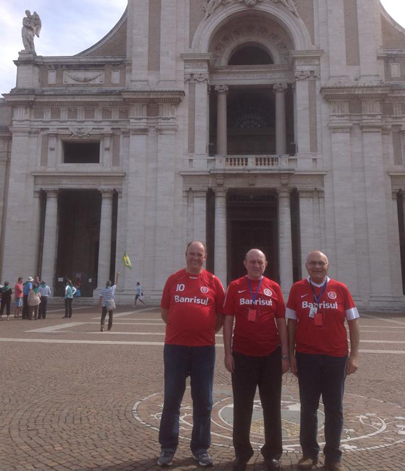 Torcedores do Internacional, os padres José Antônio Heinzmann (Seminário de Gravataí), Leandro Chiarello (Igreja Nossa Senhora do Rosário) e Márcio Andrade (Igreja Nossa senhora Auxiliadora) estão em missão na Itália. Além dos desígnios religiosos, eles também aproveitam a viagem para demonstrar o amor pelo Clube do Povo, como pode ser visto na foto acima.