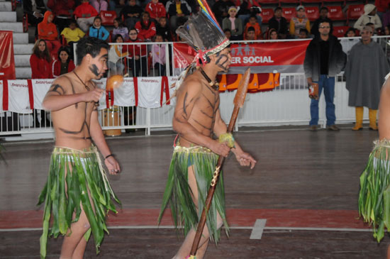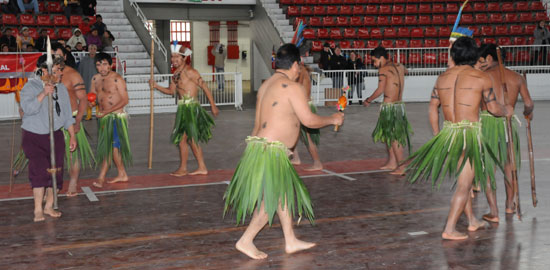 Grupo indígena realizou apresentação de danças na quadra do Gigantinho