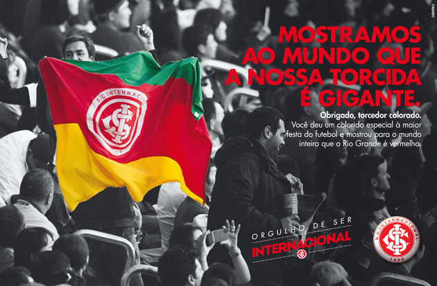 O Sport Club Internacional agradece principalmente ao seu torcedor, que mostrou para o mundo inteiro que a nossa torcida é Gigante e é o maior patrimônio do Clube do Povo.