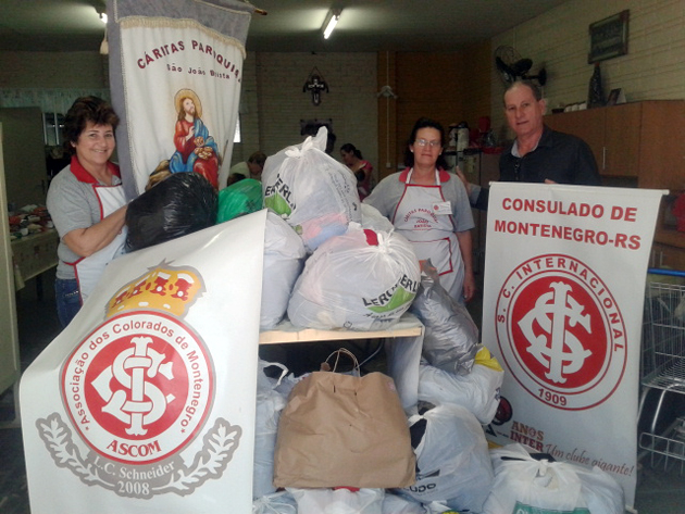 O Consulado Colorado de Montenegro, em parceria com a ASCOM, realizou a 6ª edição da campanha Colorado Solidário, com resultado extremamente positivo. Na tarde desta terça-feira (15/7), todo o material arrecadado foi doado para a Comunidade Católica de Montenegro, que faz a distribuiçáo aos necessitados de toda a região. Mais uma vez, a torcida Colorada se fez presente mostrando toda a sua solidariedade.