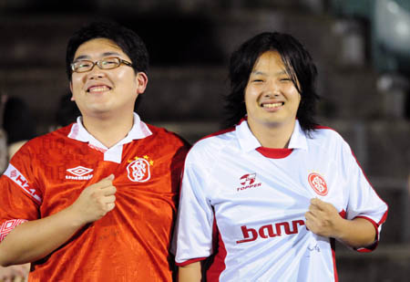 O professor Tanaka Kazuteru e o estudante Ogawara Satoshi são japoneses, moram há milhares de quilômetros de Porto Alegre e não entendem uma palavra de português. O que não impediu que os dois fossem ao treino do time de Tite nesta segunda-feira à noite em Oita (o primeiro com bola para a decisão diante do Oita Trinita) trajados como se fossem torcedores colorados. Com camisas oficiais antigas do Clube, Kazuteru e Satoshi puderam ver de perto o time que veneram. “Vou ao estádio torcer para o Inter na quarta”, anunciou Satoshi, 20 anos, morador de Oita, vestido um modelo branco da camisa colorada.