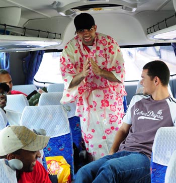 Sandro divertiu o grupo colorado durante trajeto no ônibus