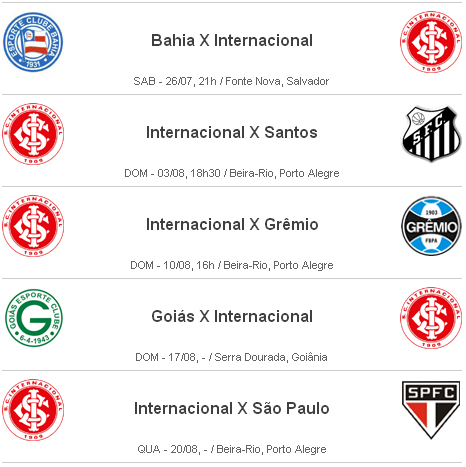 > Cinco próximos jogos no Brasileirão