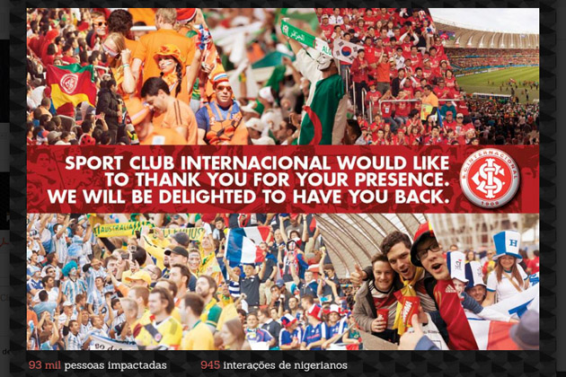 Inter cria ação de agradecimento aos estrangeiros da Copa