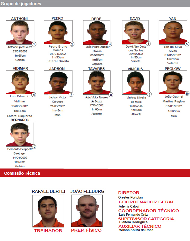 Tradicionalmente conhecido por ser um dos clubes que mais revela jogadores para o Brasil e o mundo, o Colorado espera que algum dos atletas do grupo atual realize o sonho de se tornar profissional no futuro. “Essa é a primeira vez que o clube disputa esse que é um dos maiores torneios do planeta na categoria. Tenho certeza que o futuro desses meninos será promissor”, completa.