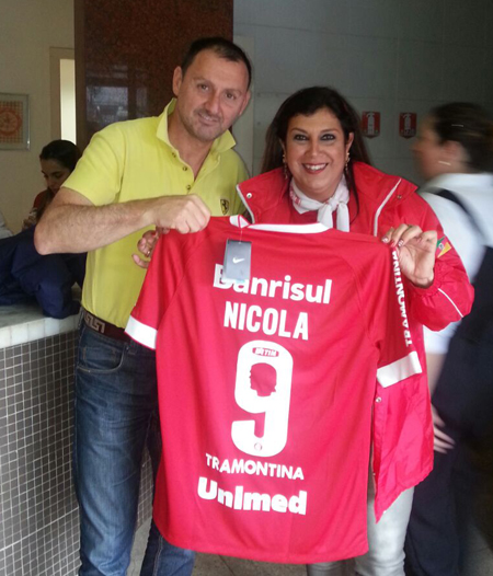 Teve sotaque italiano no Gigante durante o Gre-Nal vencido pelo Colorado no final de semana. Isso porque o cônsul-geral da Itália, Nicola Occhipinti, e o vice, Stefano Di Vittorio, foram conferir de perto o famoso clássico gaúcho. Para recordação, eles ainda foram presenteados com a camisa do Inter pela conselheira da Feci Naimara Scarpetti.