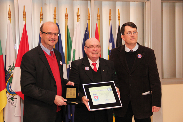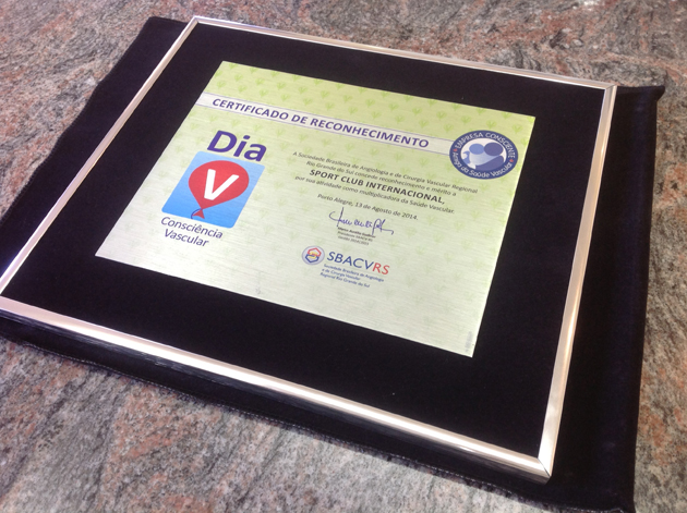 Campeão de Tudo, mais uma vez o Internacional recebeu uma premiação. Desta vez, fora de campo e por uma causa nobre. Nesta quarta-feira (13/8), o Clube ganhou um certificado de empresa consciente pelo apoio, pela terceira vez, à campanha do Dia V – Dia da Consciência Vascular, promovido pela Sociedade Brasileira de Angiologia e Cirurgia Vascular – Regional Rio Grande do Sul (SBACV-RS). Também foi encaminhada uma premiação da 53ª Legislatura ao presidente Giovanni Luigi, pelo suporte que tem oferecido à causa da saúde vascular. As premiações foram entregues na Assembléia Legislativa pelas mãos do deputado estadual Gerson Burmann e do doutor Marco Aurélio Grudtner, presidente da SBACV-RS, ao secretário-geral do Inter, Gelson Pires, que representou o Inter na ocasião.