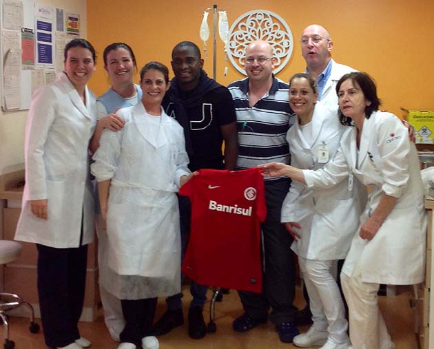 Volante Willians visitou clínica de tratamento do câncer em Porto Alegre